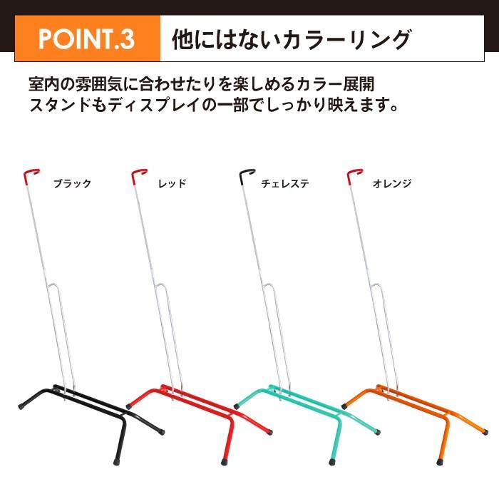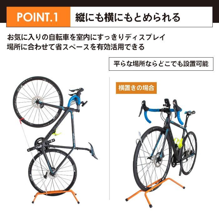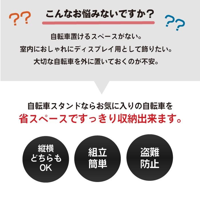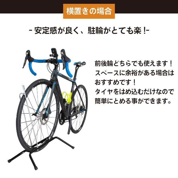 前輪OR後輪をタイヤ受けに入れるだけで横置きスタンドとして成立します。