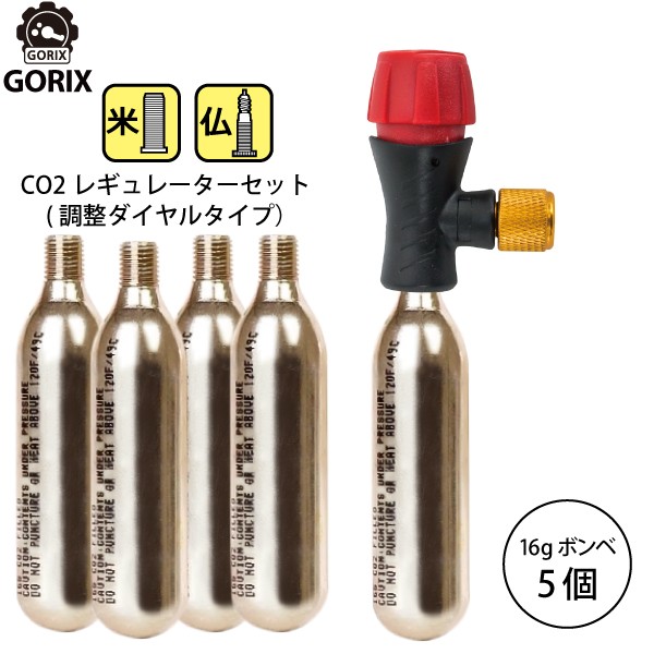 GORIX ゴリックス レスキューCO2ボンベ 調整ダイヤル式レギュレーター アダプターCO2ボンベ(5本セット)【米仏式対応】LF0101R-01