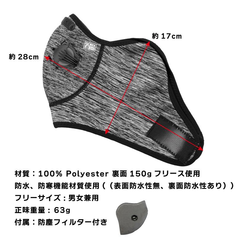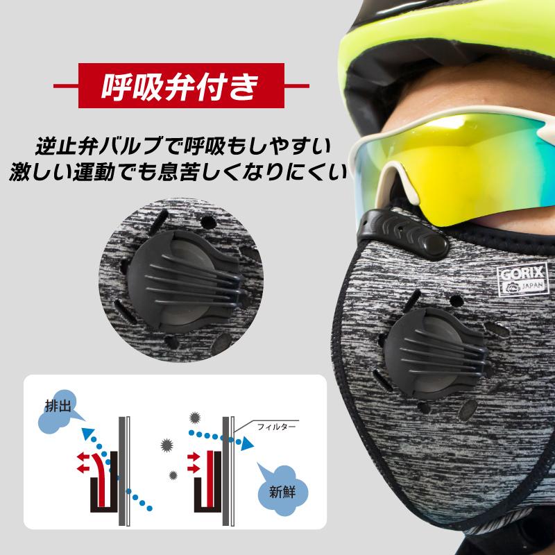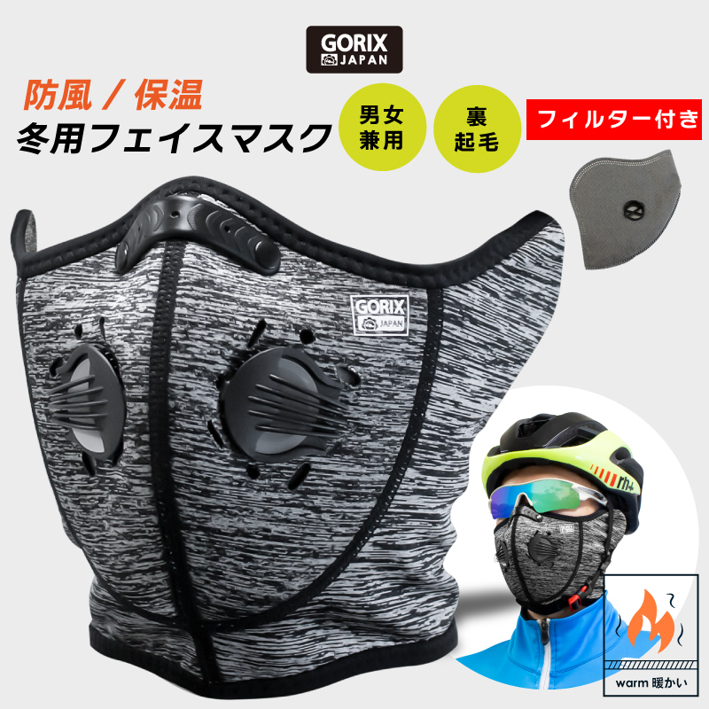 【全国送料無料】GORIX ゴリックス 冬用フェイスマスク スポーツマスク 自転車 ロードバイク 呼吸弁付き フィルター付き 裏起毛 防寒 保温 防風 (GW-BaH222)