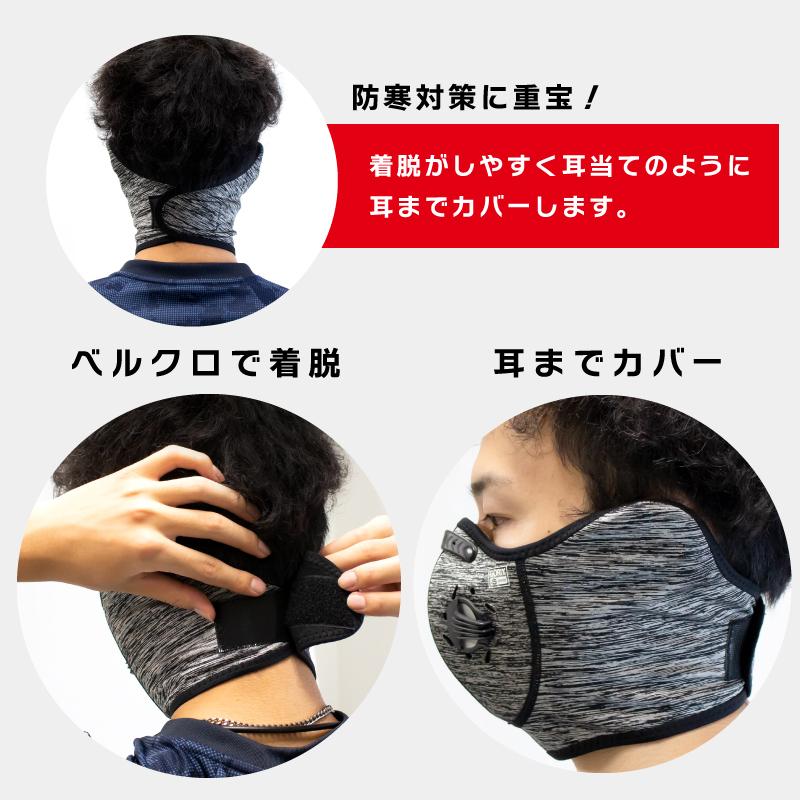 普通のスポーツマスクとは違い耳まで覆う事ができるので