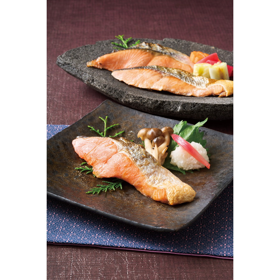 | 内容量 | 秋鮭切身(北海道産)70g×4、紅鮭切身(ロシア産またはアメリカ産)70g×2、銀鮭切身(チリ産)80g×2 | |