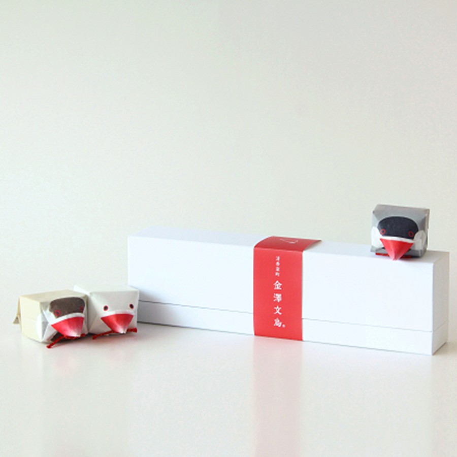 石川の食材の魅力に誘われてやってきた旅の文鳥が、金澤の地を気に入り、「金澤文鳥」になりました。「金澤文鳥」は、清香室町の伝統和菓子と進化が融合した新感覚羊羹。いろんな世代のかたが、様々な形で一緒に楽しめるボーダレスな和洋菓子として誕生しました。金澤文鳥シリーズ定番3種を詰合せにいたしました。かわいらしい文鳥たちがとまり木に寄り添っている様子のパッケージ。