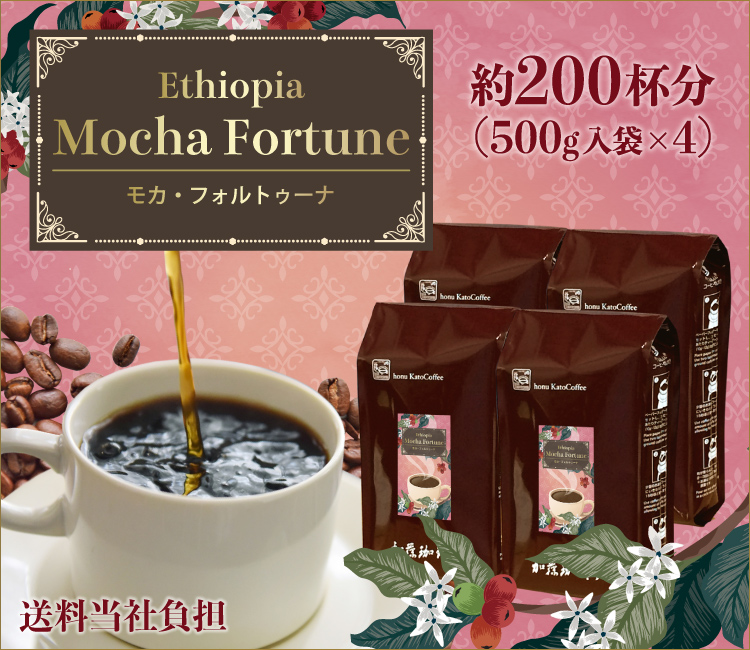 エチオピア モカ・フォルトゥーナ珈琲2kgセット(フォルト×4)/珈琲豆 加藤珈琲店 送料無料 コーヒー コーヒー豆 加藤珈琲