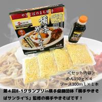 第4回B-1グランプリin横手優勝団体「横手やきそばサンライ’S」監修の横手やきそば4人前です。もちもちの茹麺とかつおダシソースが決め手で、お好みで継ぎ足し可能なボトルソース付。付け合せは紅生姜ではなく福神漬を添えて、半熟目玉焼きの黄身と絡めて食べるのが横手流です。