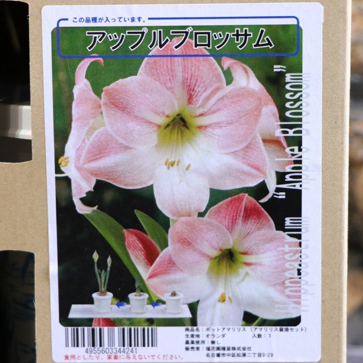 【球根】 アマリリス ポット植え 一重咲き アップルブロッサム 1球入 1箱 球根 福花園 ギフト 花壇 鉢植え お洒落 可愛い 豪華 手軽 春の花 花 苗 初心者