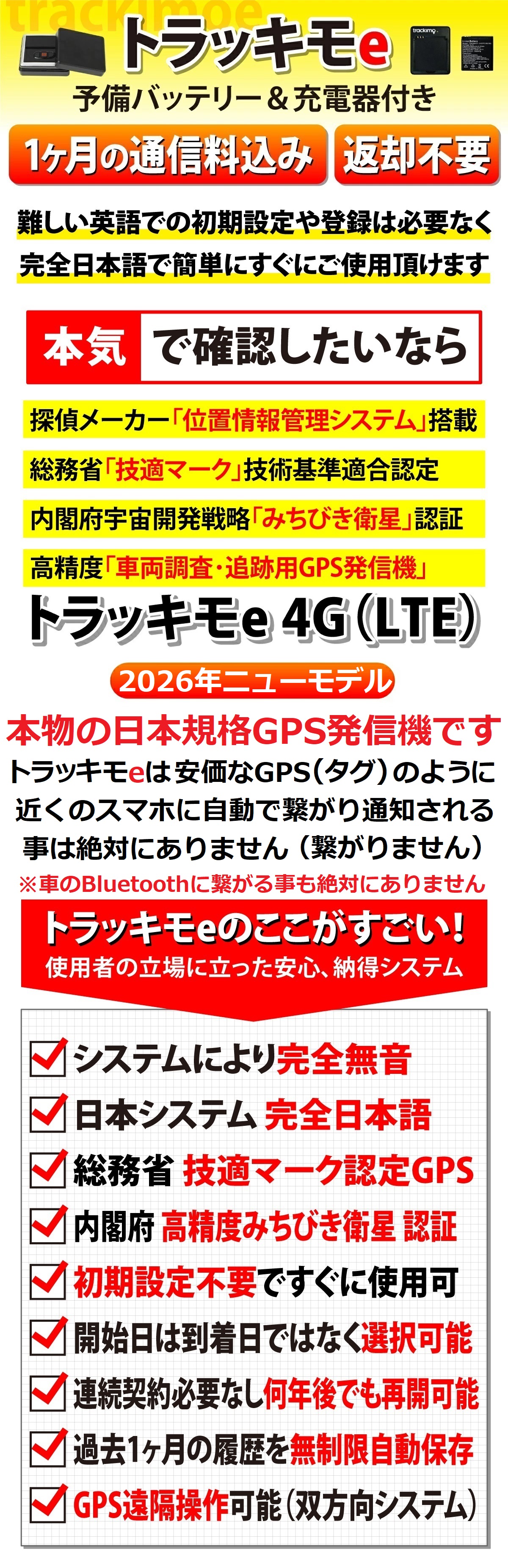 GPS発信機と分かる内容は一切記載しません。