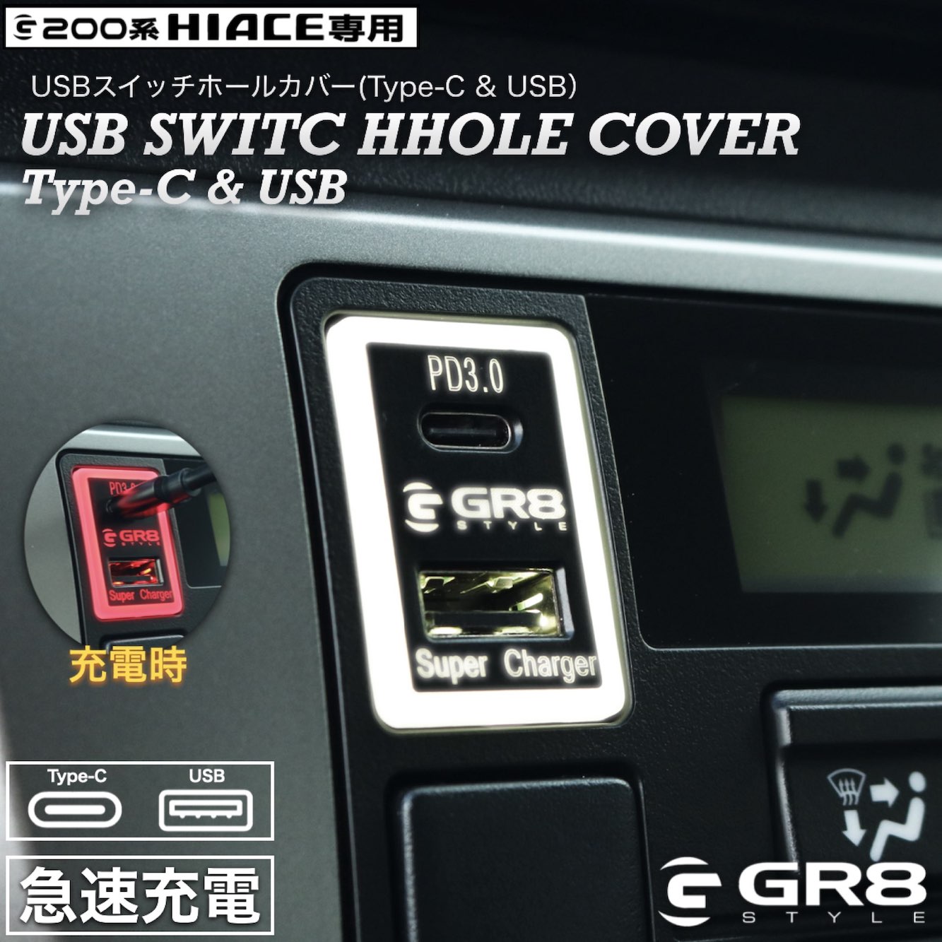 【GR8】急速USB充電器(Type-A&Type-C) ハイエース ホワイト USBポート 標準 ワイド 200系 USB充電器 急速 type-C ダークプライム2 ダークプライムS