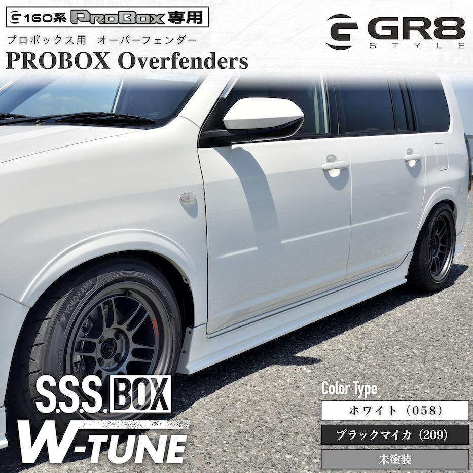 【GR8】プロボックス用 オーバーフェンダー エアロ 左右前後4ピース スポーティー フェンダー 160系 ABS製 パーツ ホワイト ブラック 塗装済み 未塗装 素地