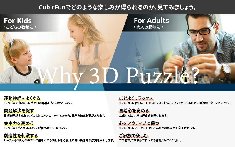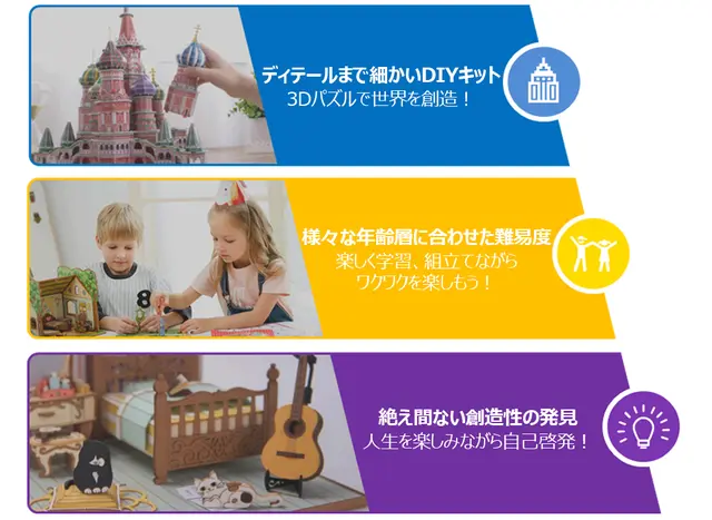 子どもも大人も、様々な年齢層が楽しめる3Dパズル