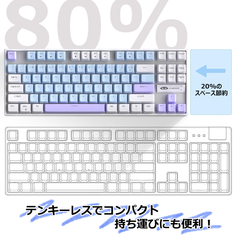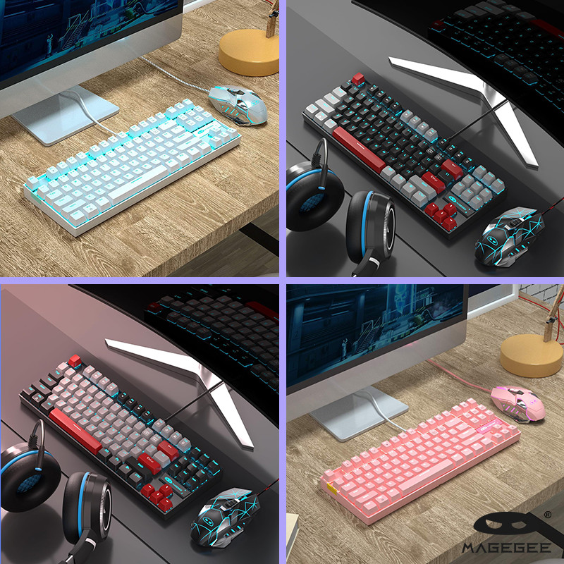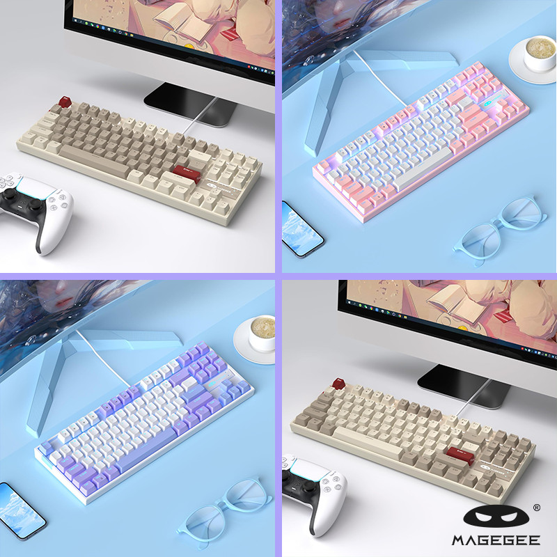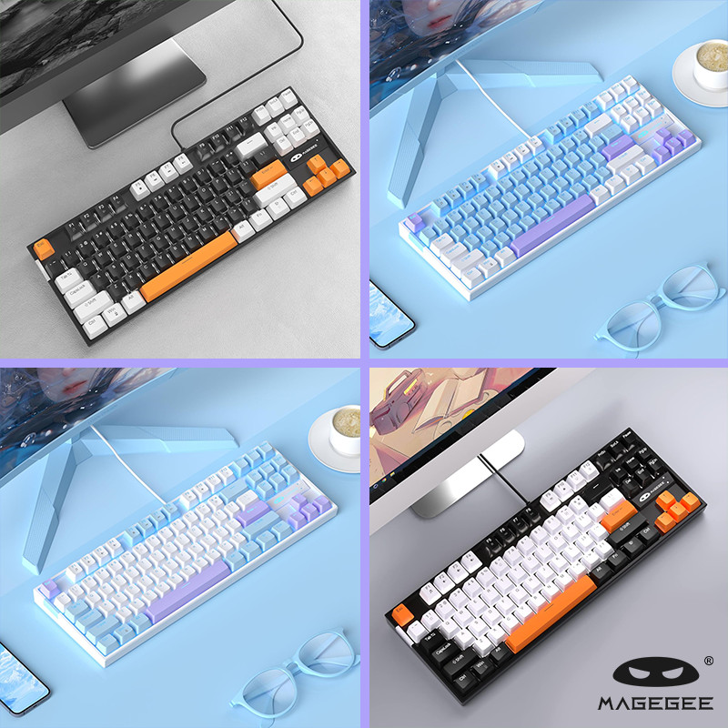 MageGee ポータブル 80% メカニカル ゲーミング キーボード 1 赤軸 青軸 茶軸 黄軸 MK-STAR 水色 白色 87 キー 有線 US配列 RGB テンキーレス 水色