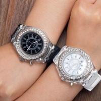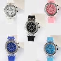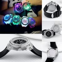 海外直輸入の可愛いキラキラのラインストーンが沢山ついた男女兼用、大きめのファッション時計です。サイドのボタンを押すと7色に光る遊び心満点のとってもユニークな腕時計。ペアウォッチとしてもお使い頂けます。