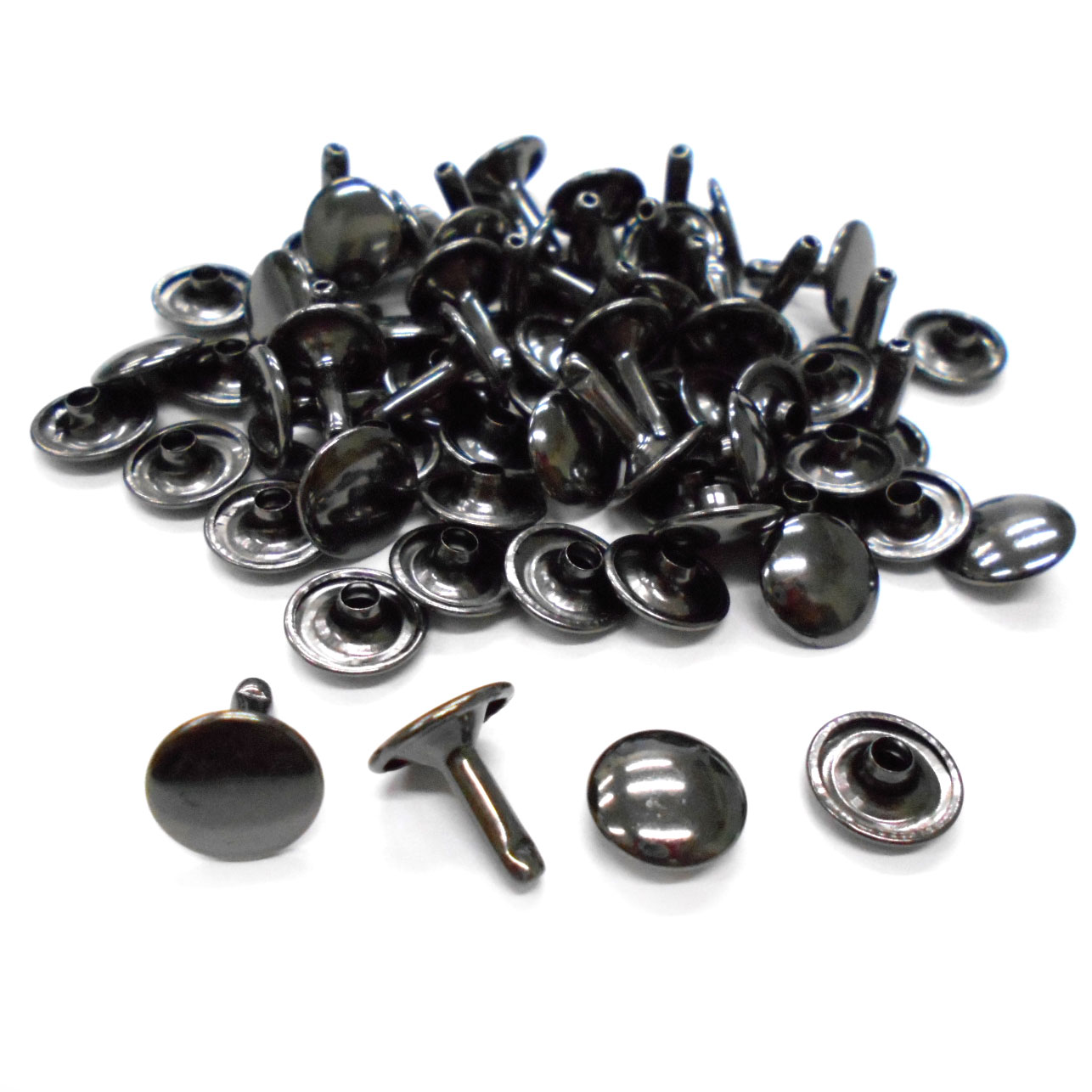 レザークラフト カシメ 金具 両面 頭12mm 足12mm 30組 ブラックシルバー/手芸 キット パーツ 革 材料 かしめ