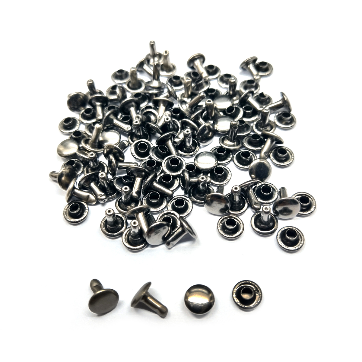レザークラフト カシメ 金具 両面 頭7mm 足7mm 50組 /ブラックシルバー/手芸 キット パーツ 革 材料 かしめ