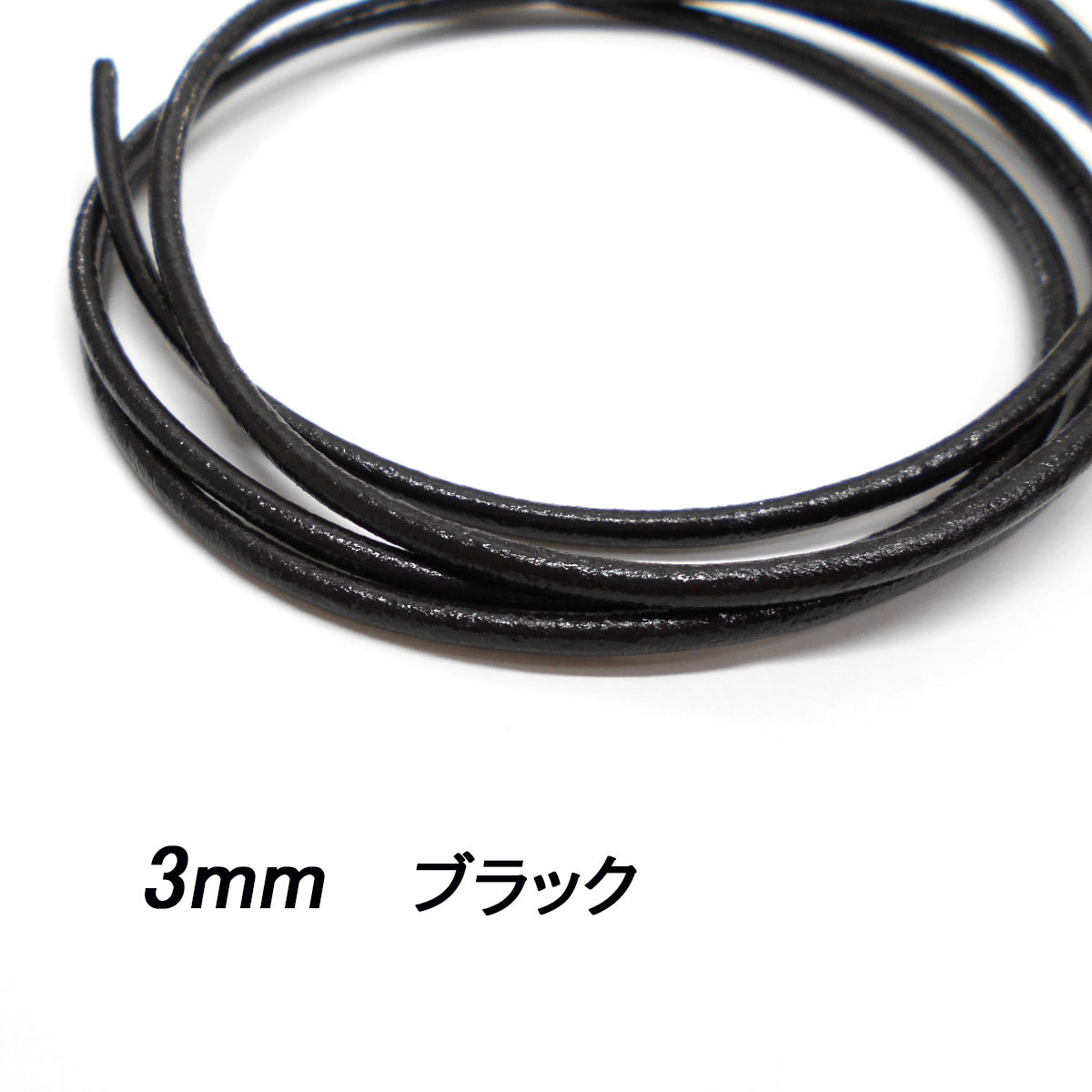 レザークラフト 革ひも 丸紐 3mm /ブラック/ 1m単位 切り売り レザーコード 丸ひも 皮 ネックレス ブレスレット ストラップ