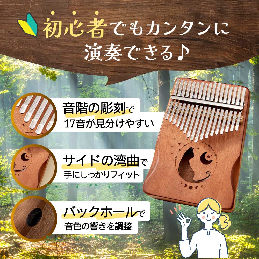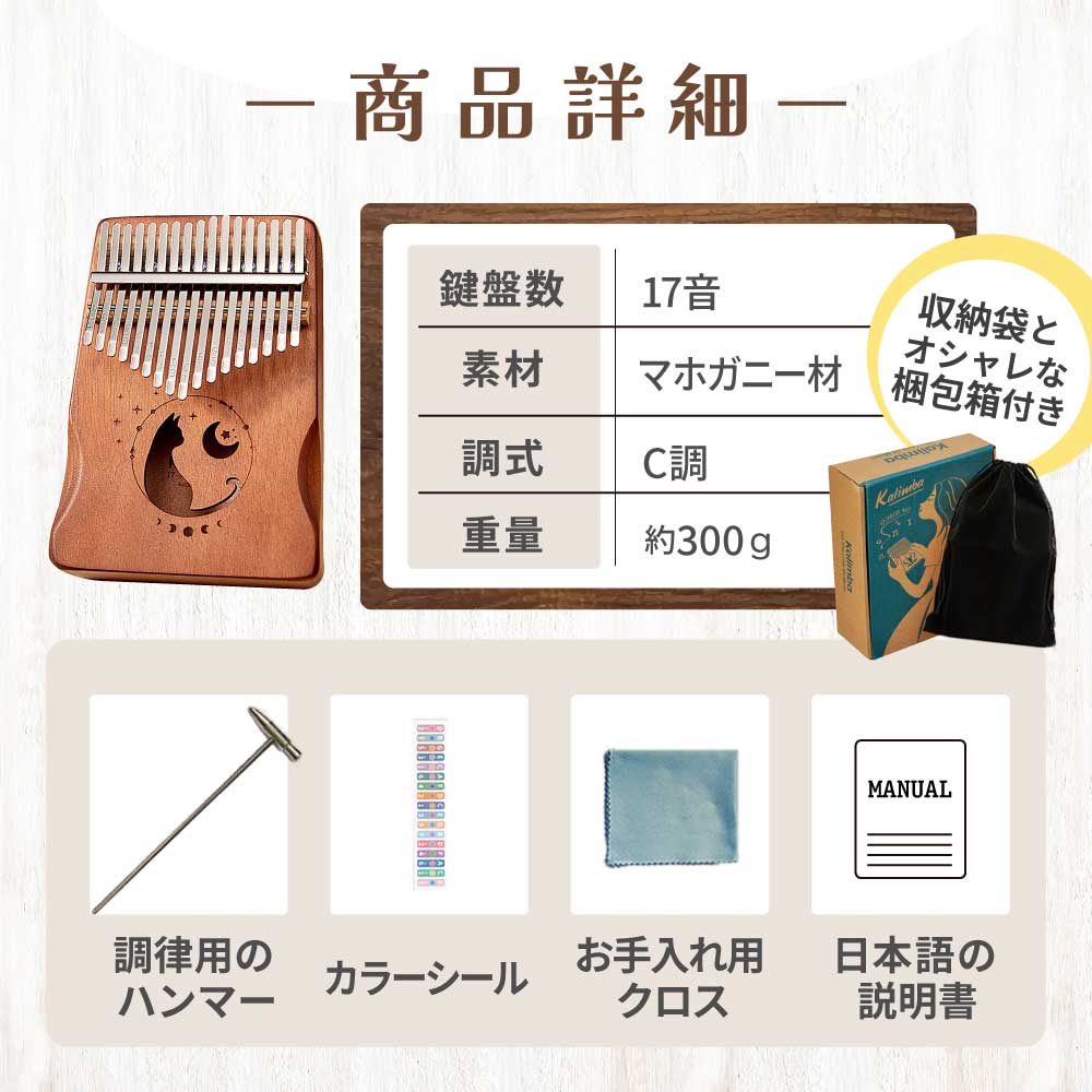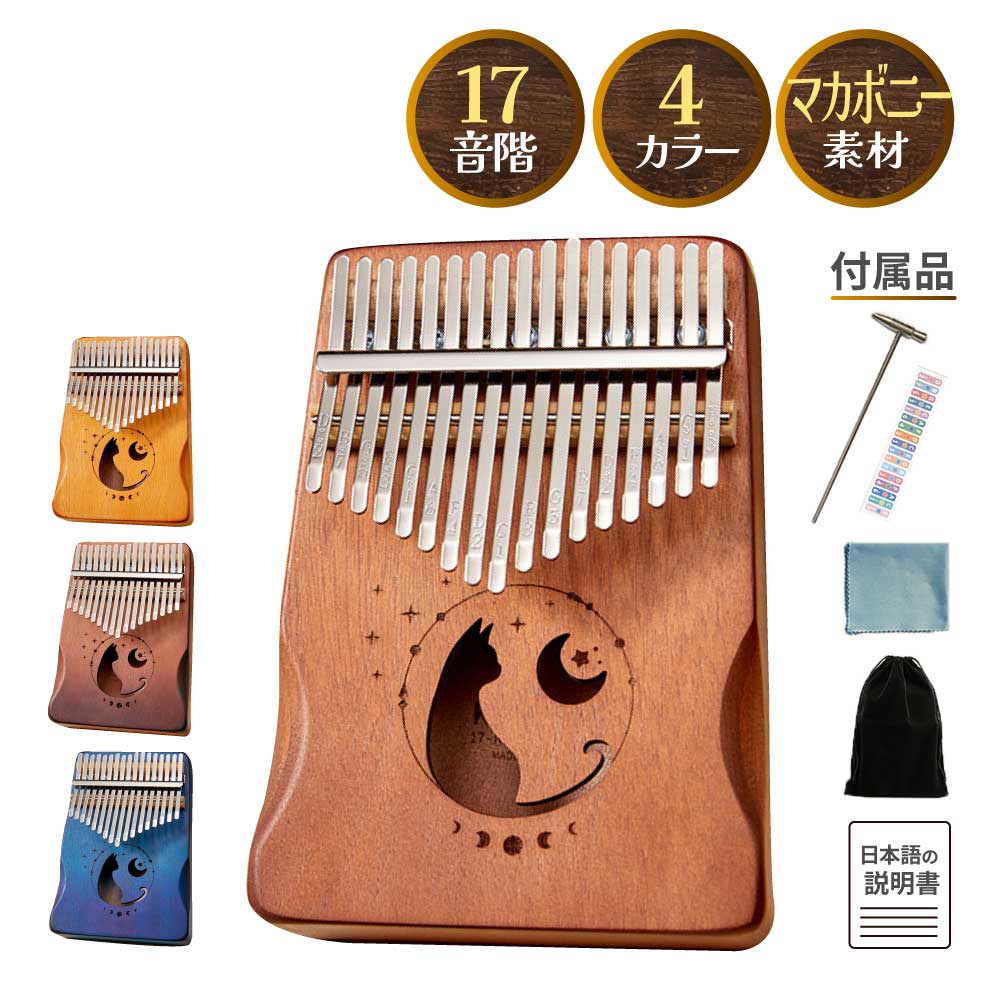 カリンバ 親指ピアノ 民族楽器 karinba 17音 指ピアノ ハンドオルゴール かわいい 猫 初心者セット 日本語マニュアル サムピアノ アフリカ楽器