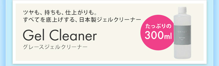 | 使用上の注意 | ・拭き取りにはグレースジェルクリーナーをご使用ください。 ・万が一ツヤが出ない場合は、硬化時間を長めにしていただければほとんどの場合解消されます。 特に暗いカラージェルの上に御使用される場合は通常より硬化時間が長くかかります。 それでもツヤが出ない場合はご使用されていますライトの照射能力が不安定、 もしくはパワー不足の可能性がございます。 ・気温が低いとジェルが硬くなったり、白く濁ってゼリー状のようになる場合がございます。 常温に戻していただくと通常の状態に戻りますのでご安心ください。 | |