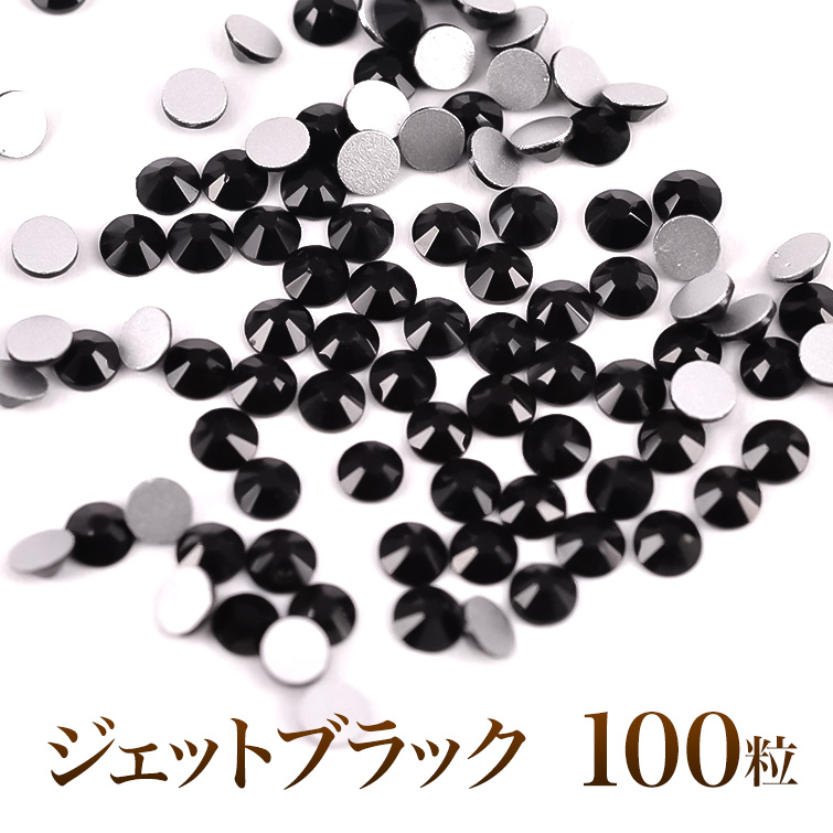 スワロフスキーのような輝き 平底ラインストーンジェットブラック100粒