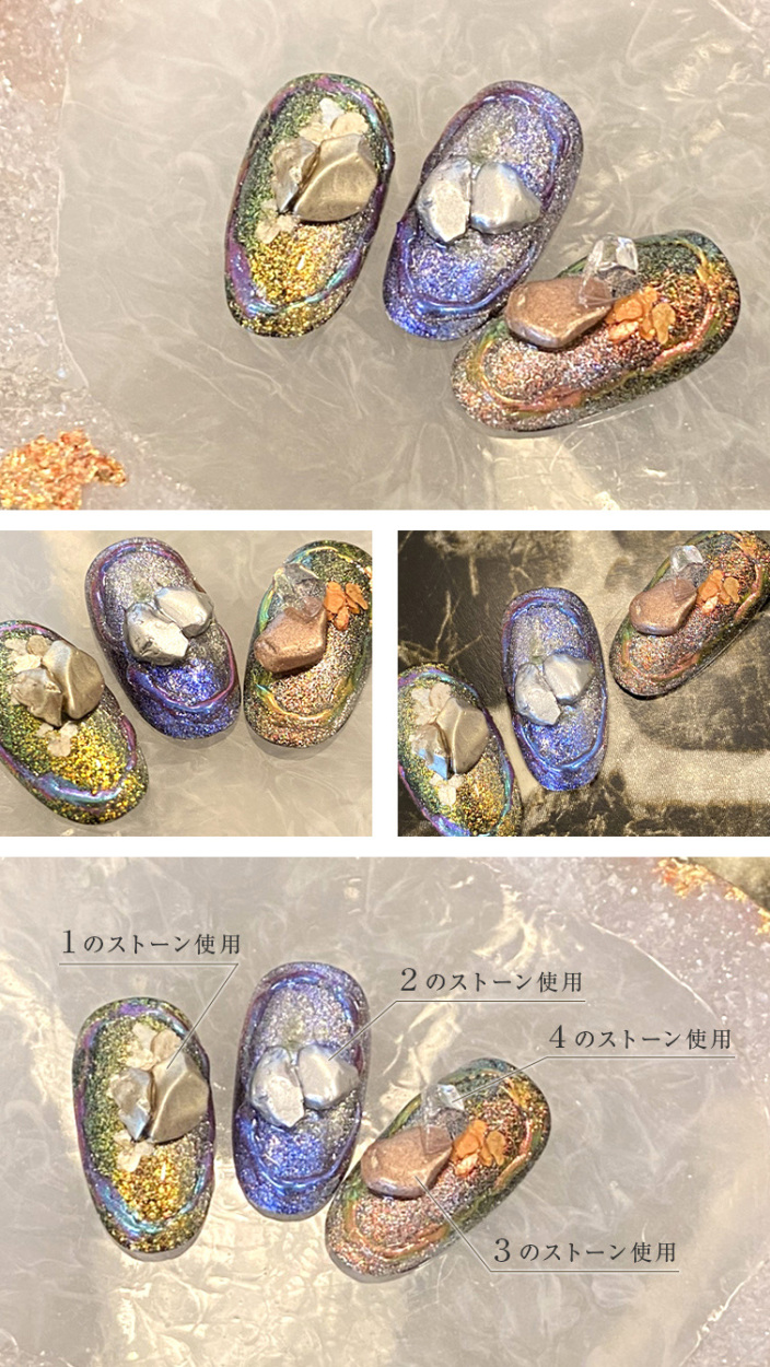 形状&大きさがイレギュラーなニュアンスネイルに最適な天然ストーンパーツ。