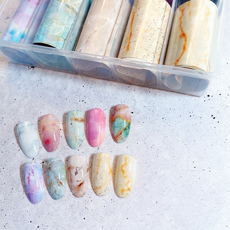 | 種類 | ・01 スノーフレイク ホワイト ・02 スノーフレイク オーロラ ・03 マーブル ・04 レース B&W ・05 マーブル 2 designs |