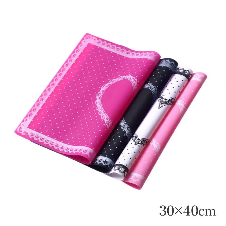 | | 商品名 | ネイルシリコンマット | | カラー | ホワイト ブラック ライトピンク ピンク | | サイズ | 30x40cm | | 商品説明 | ジェル・リムーバー・クリーナーなど液体をこぼしても シリコン製なのでしみこまず テーブルを保護してくれます。 洗ってくりかえし使用可能!