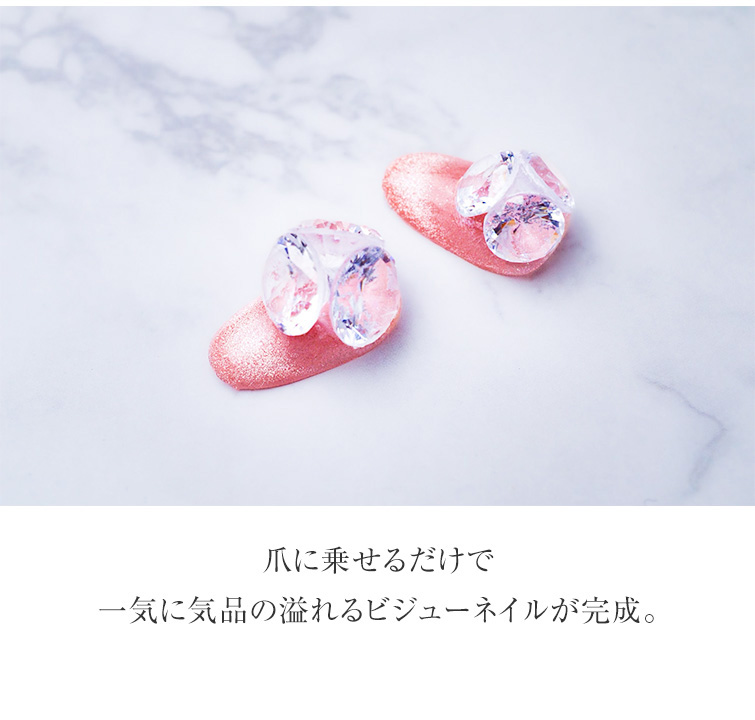 爪に乗せるだけで一気に気品の溢れるビジューネイルが完成。