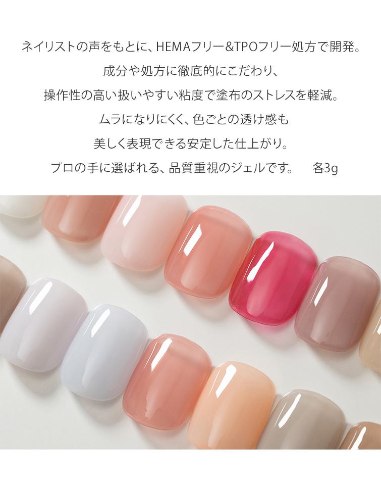 HEMAフリーTPOフリー 透け感のあるシアーカラー むらになりにくく塗りやすいカラージェル GRACE Color Gel Sheer