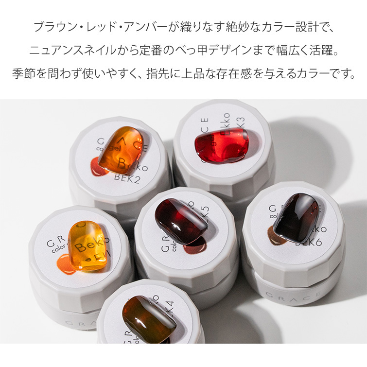 TPOフリーHEMAフリー 鼈甲ネイル 鼈甲アート べっ甲ネイル べっこうネイル アンバーカラージェル ジェルネイル BEK1 BEK2 BEK3 BEK4 BEK5 BEK6 グレースカラージェル べっこうシリーズ
