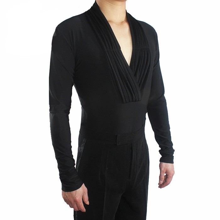 社交ダンス衣装 ブラック Vネック 競技用 ラテンダンスシャツ 男性用 ダンス衣装 ダンスウェア 練習着 ラテン ルンバ 発表会