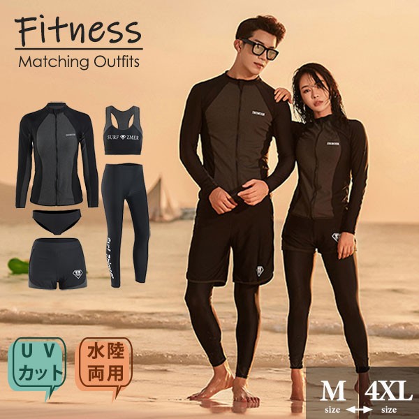 セット内容 | 女性:長袖ラッシュガード/スポーツブラ/ショーツ/ショートパンツ/レギンス 男性:長袖ラッシュガード/ショートパンツ/レギンス ※1着分のみ(男性と女性のセット商品ではございません) (記載のないアクセサリー 小物等は付属しません) |