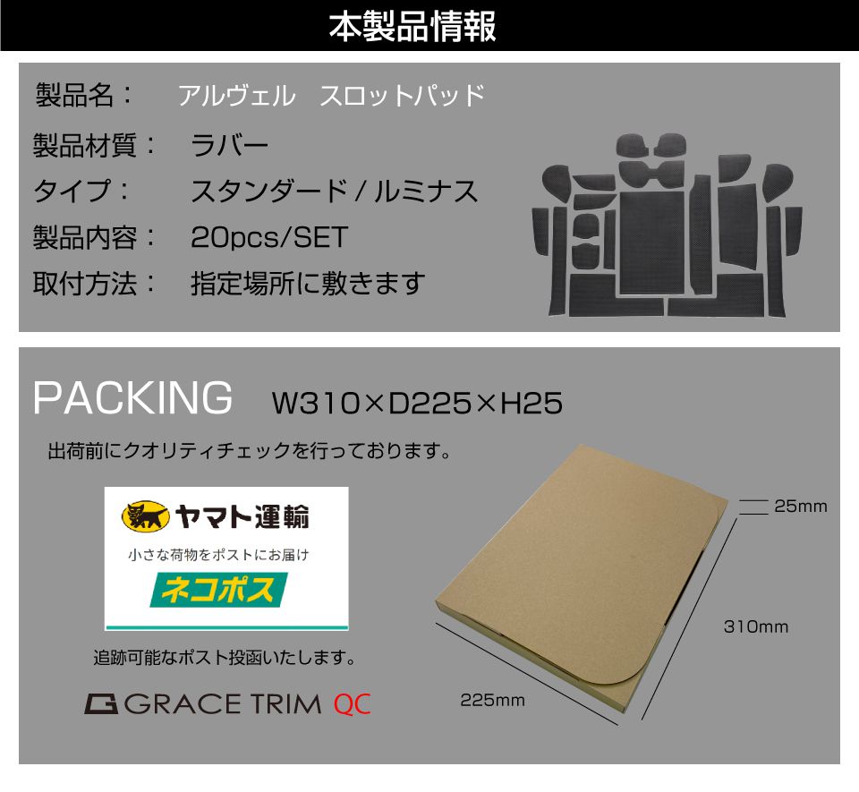 | 商品名 | 40系 アルファード ヴェルファイア ラバーマット 20pcs 全2色 |