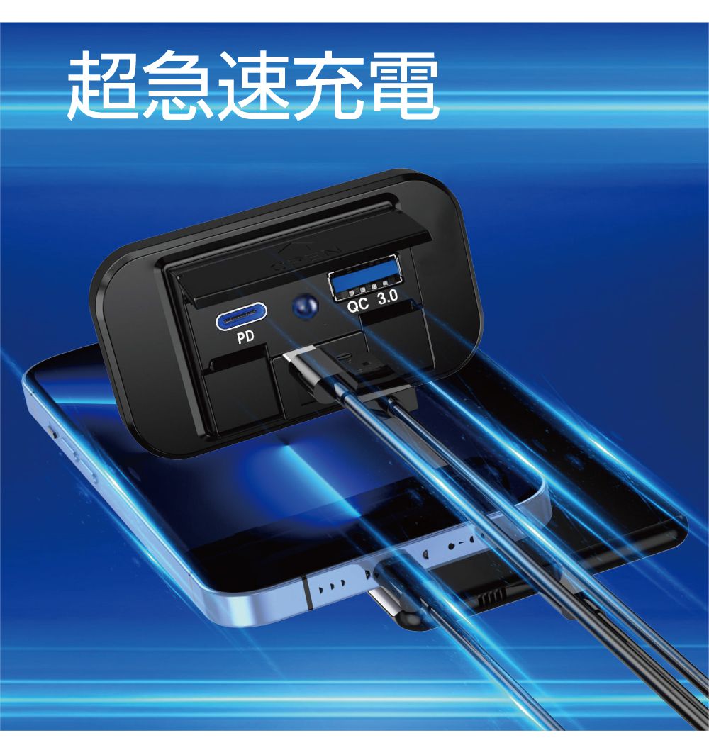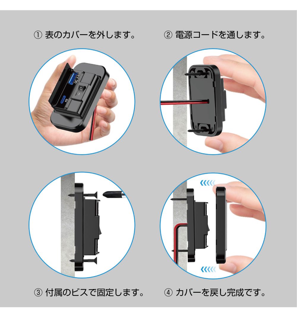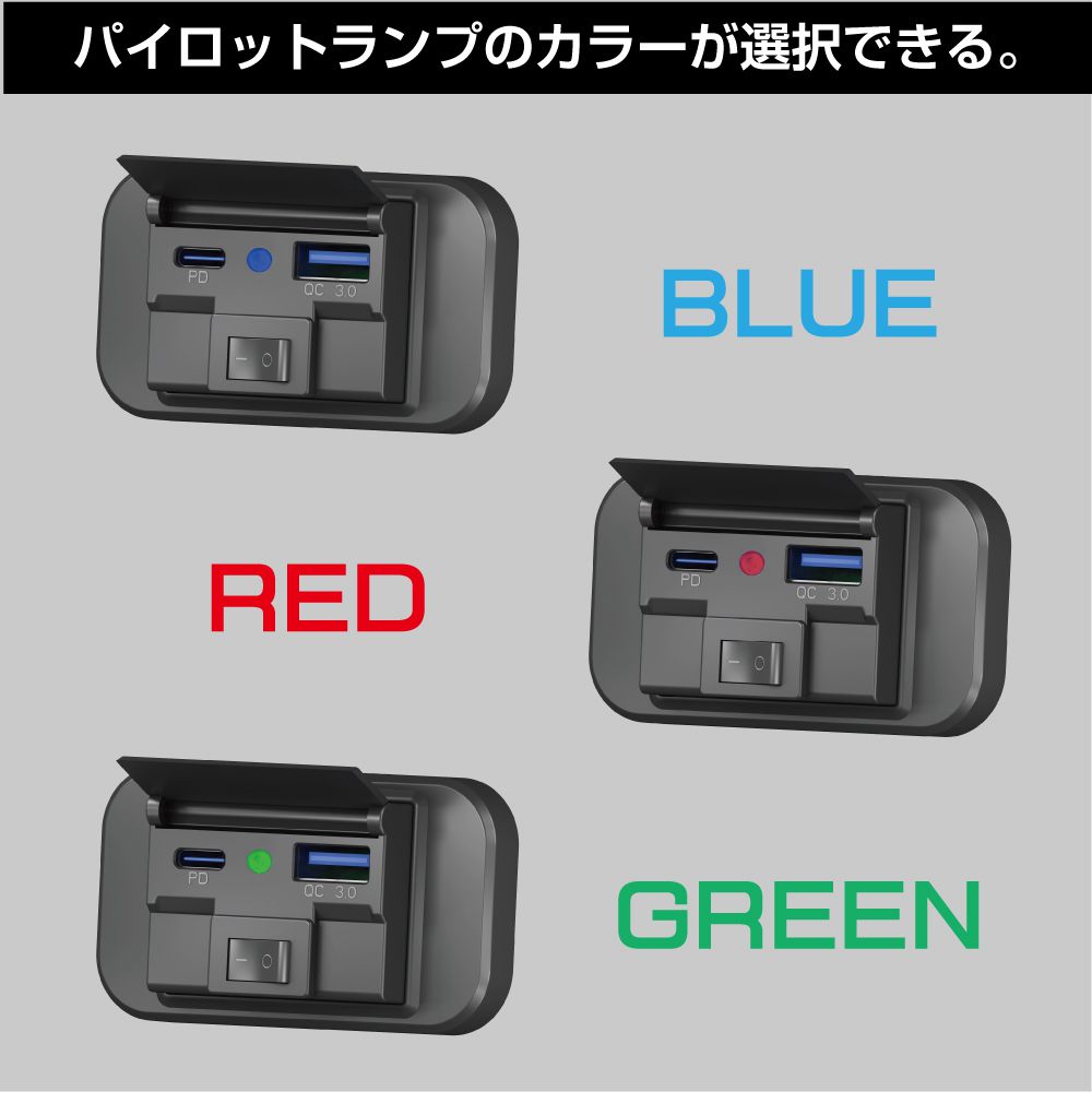 | 商品名 | 保護カバー付き PD & QC3.0 USBパネル DC12V-24V 全3カラー |