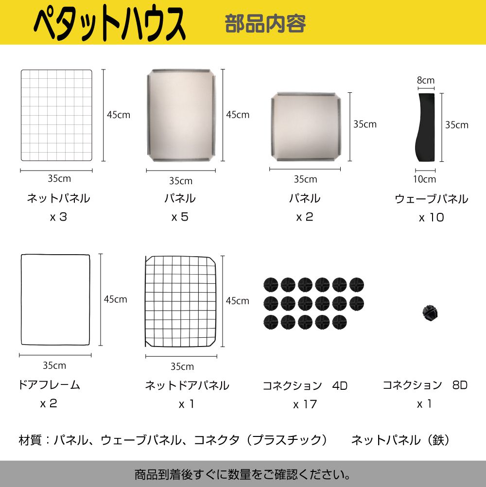 | 特徴 | ワンちゃんネコちゃん大喜び( ・ω・)/ ペットのためのDIY住宅(ペットサークル)♪ ニーズに合わせて自由にスペースを調整できます! さらに別売りの部品で拡張もできます!! |