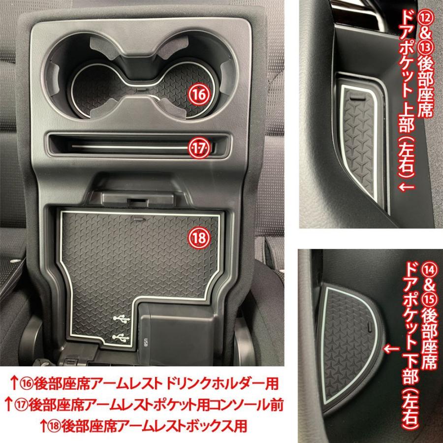 | セット内容 全18ピース | (1,2)前席ドアドリンクホルダー用×2(左右) (3,4)前席ドアポケット用 下部×2(左右) (5,6)前席ドアポケット用 上部×2(左右) (7)フロントトレイ用×1 (8,9)コンソール前ドリンクホルダー×2 (10)コンソールボックス インナートレイ用×1 (11)コンソールボックス用×1 (12,13)後部座席ドアポケット 上部×2(左右) (14,15)後部座席ドアポケット 下部×2(左右) (16)後部座席アームレスト ドリンクホルダー用×1 (17)後部座席アームレストポケット用×1 (18)後部座席アームレストボックス用×1 |