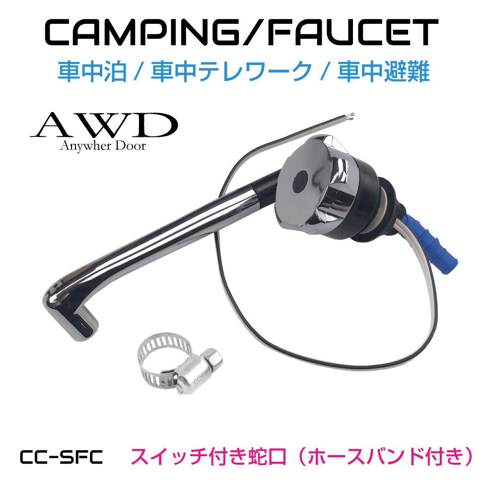 | 特徴 | ・車をキャンピングカー仕様にする際の便利グッズ、スイッチ付き蛇口です。 ・家庭の蛇口と同じ用に回して水を流せるので快適です。 ・別売のポンプやシンクと合わせば車内にシンクを設置できます。 ・固定に必要なホースバンド付き! |