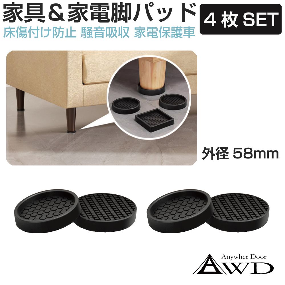| 商品名 | 家具&家電脚スベリ止めパッド 4枚セット 外径58mm 丸型 |