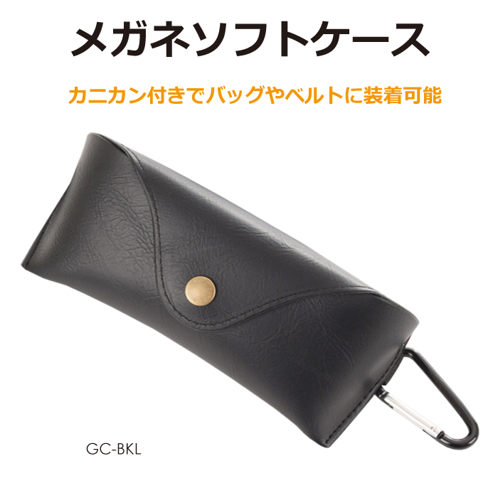 ■レザー ソフト メガネケース カニカン付き GC-BKL
