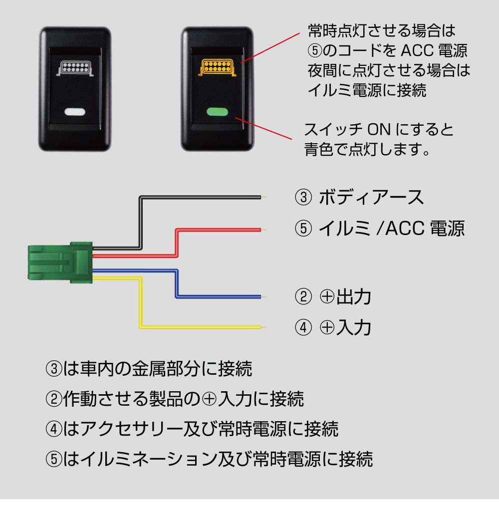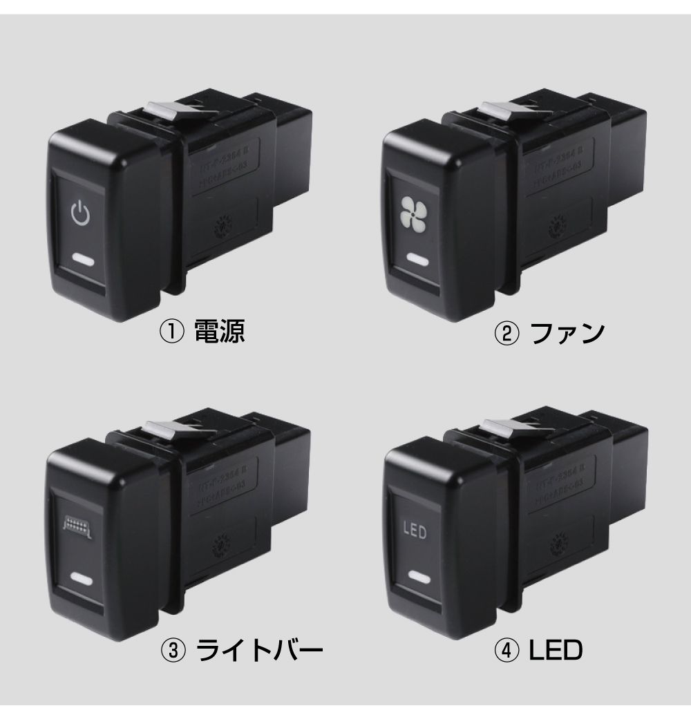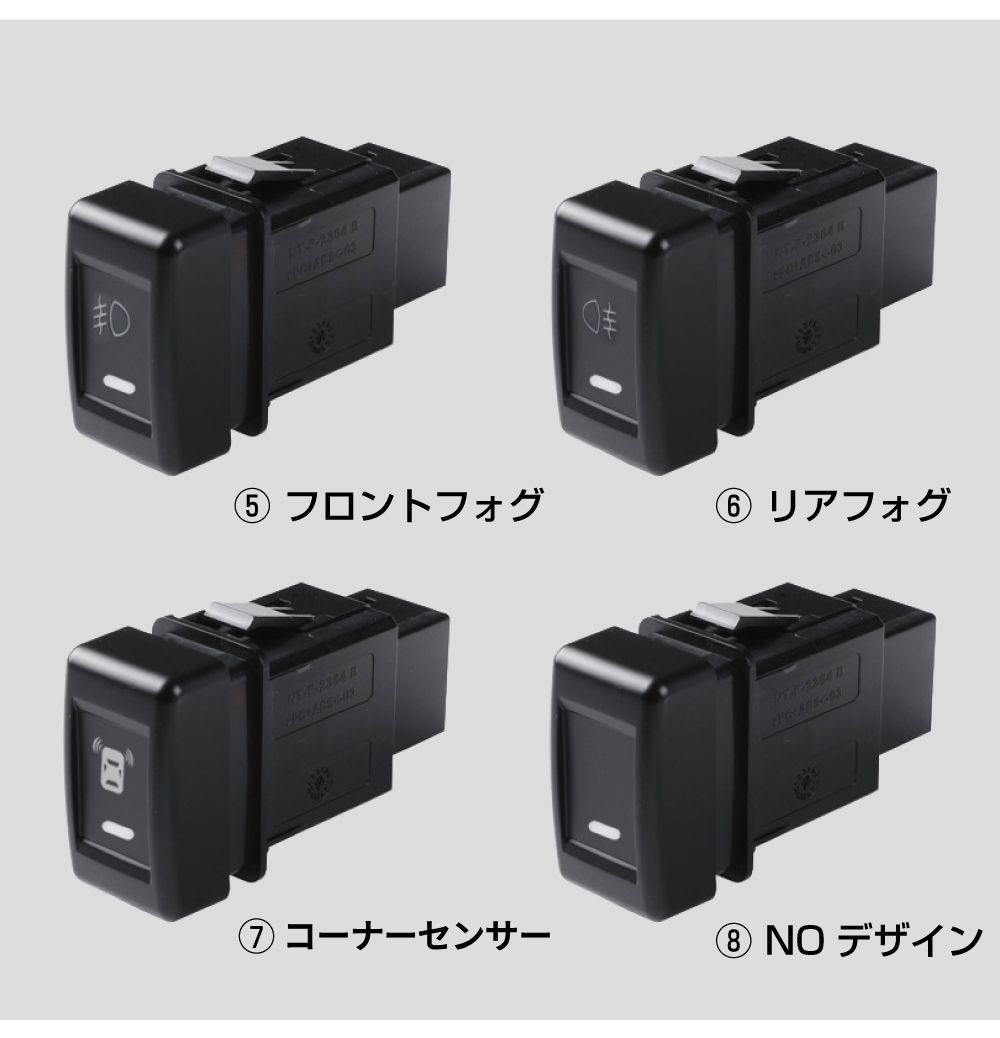 | パターン | 電源/ファン/LEDライトバー/LED照明/フォグ/リアフォグ/コーナーセンサー/NOマーク |