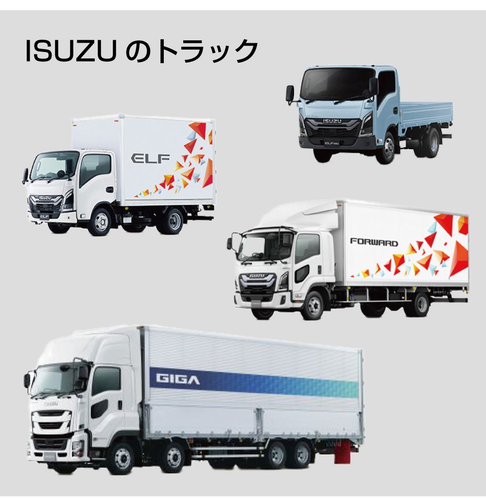 | 適合車種 | 例) ISUZU:エルフ ミオ(ELFmio)/エルフ(ELF)/フォワード(FORWARD)/ギガ(GIGA) ※画像の形状とサイズが合えば装着できます。必ず取付場所の形状・サイズをご確認ください。 |