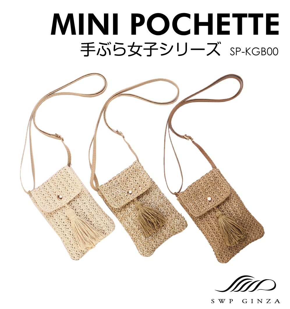 | 特徴 | フレンジをあしらった大人かつ涼しげでさわやかな編み込みミニポシェットです。 スマホ、カードケースなどの小物がスッポリ収まるので軽いお出かけに最適! カバーはマグネットで留めるタイプなので小物の出し入れもラクラク!! |