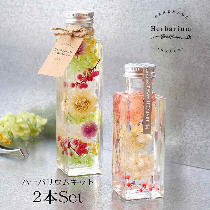 ハーバリウム キット 2本セット [ハピネス] プリザーブドフラワー 材料 セット 手作り ワークショップ イベント 工作 女性 プレゼント ギフト バレンタイン