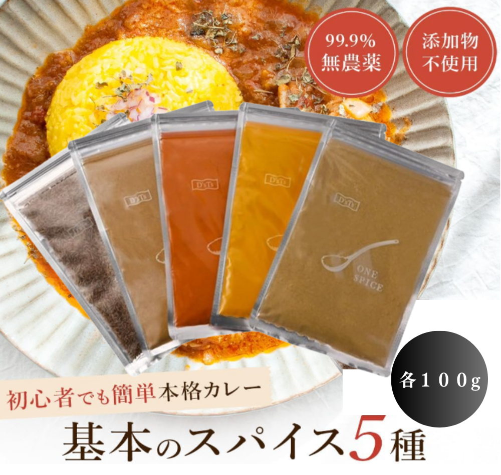 【D'sTs公式】 スパイスカレー カレー セット クミンシード ターメリック クミンパウダー チリパウダーコリアンダーパウダー カレー粉 無添加 100g ×5種セット