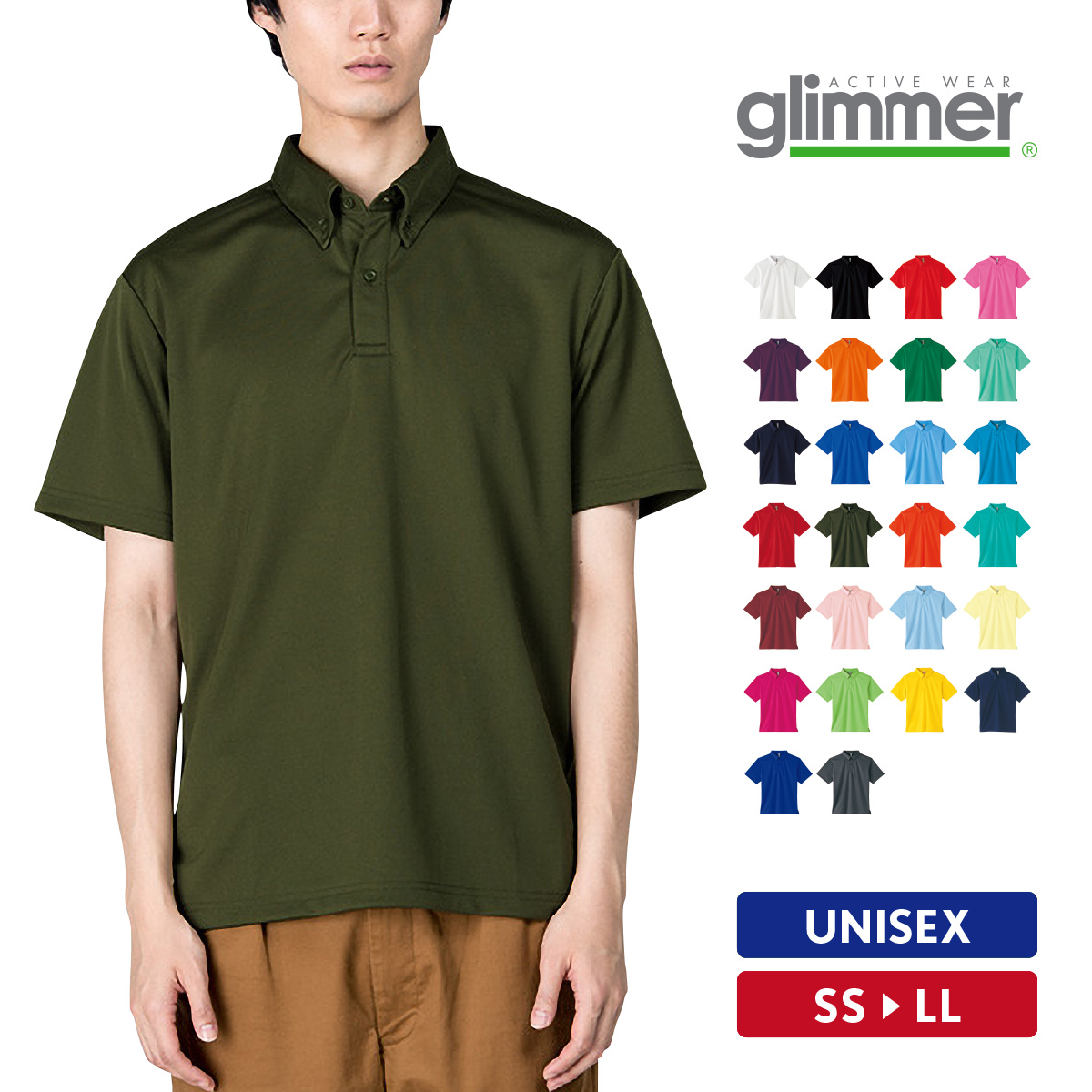ポロシャツ メンズ 半袖 無地 ボタンダウン ドライ 吸汗速乾 レディース glimmer グリマー 4.4オンス 00313-ABN