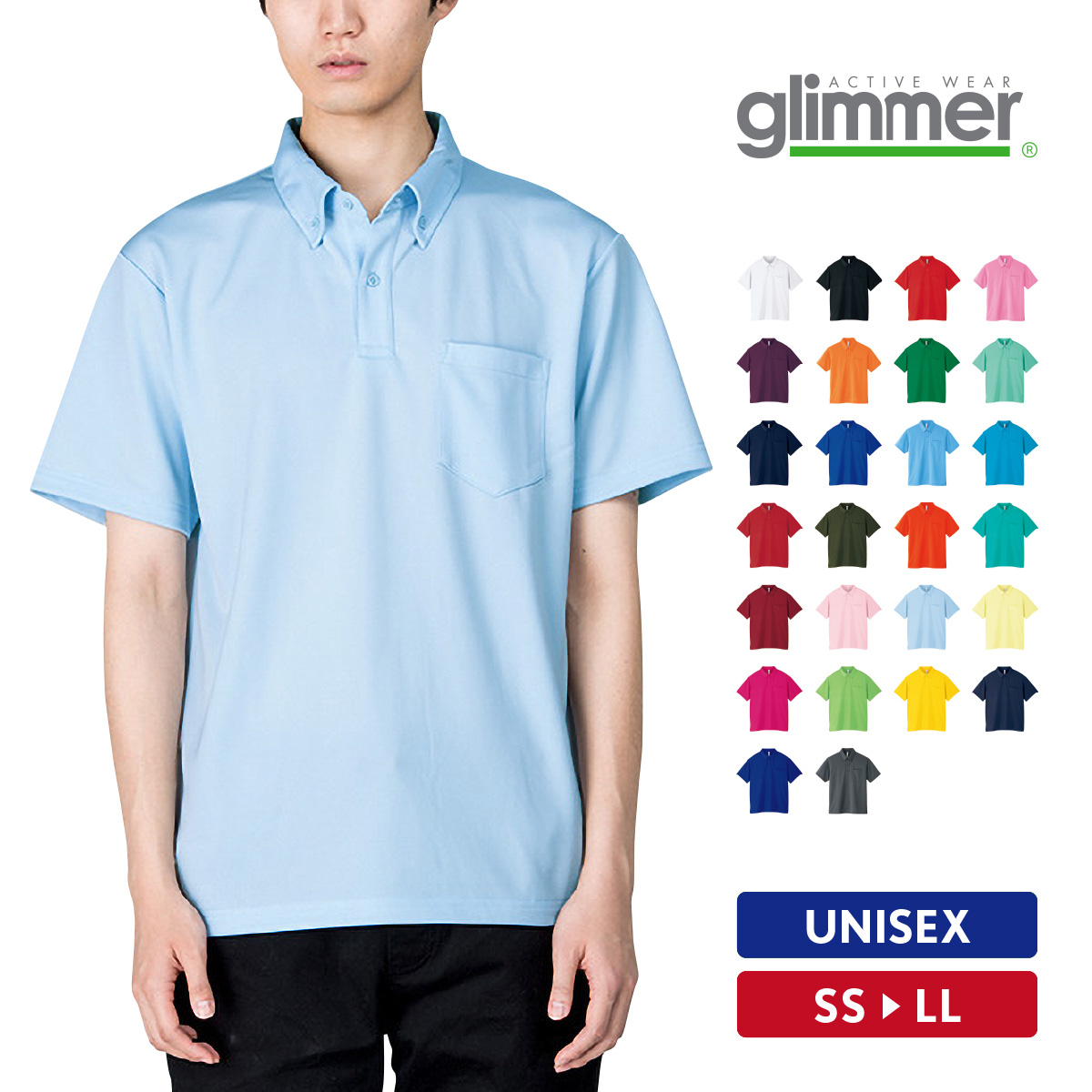 ポロシャツ メンズ 半袖 無地 ボタンダウン ドライ 吸汗速乾 レディース glimmer グリマー 4.4オンス 00331-ABP