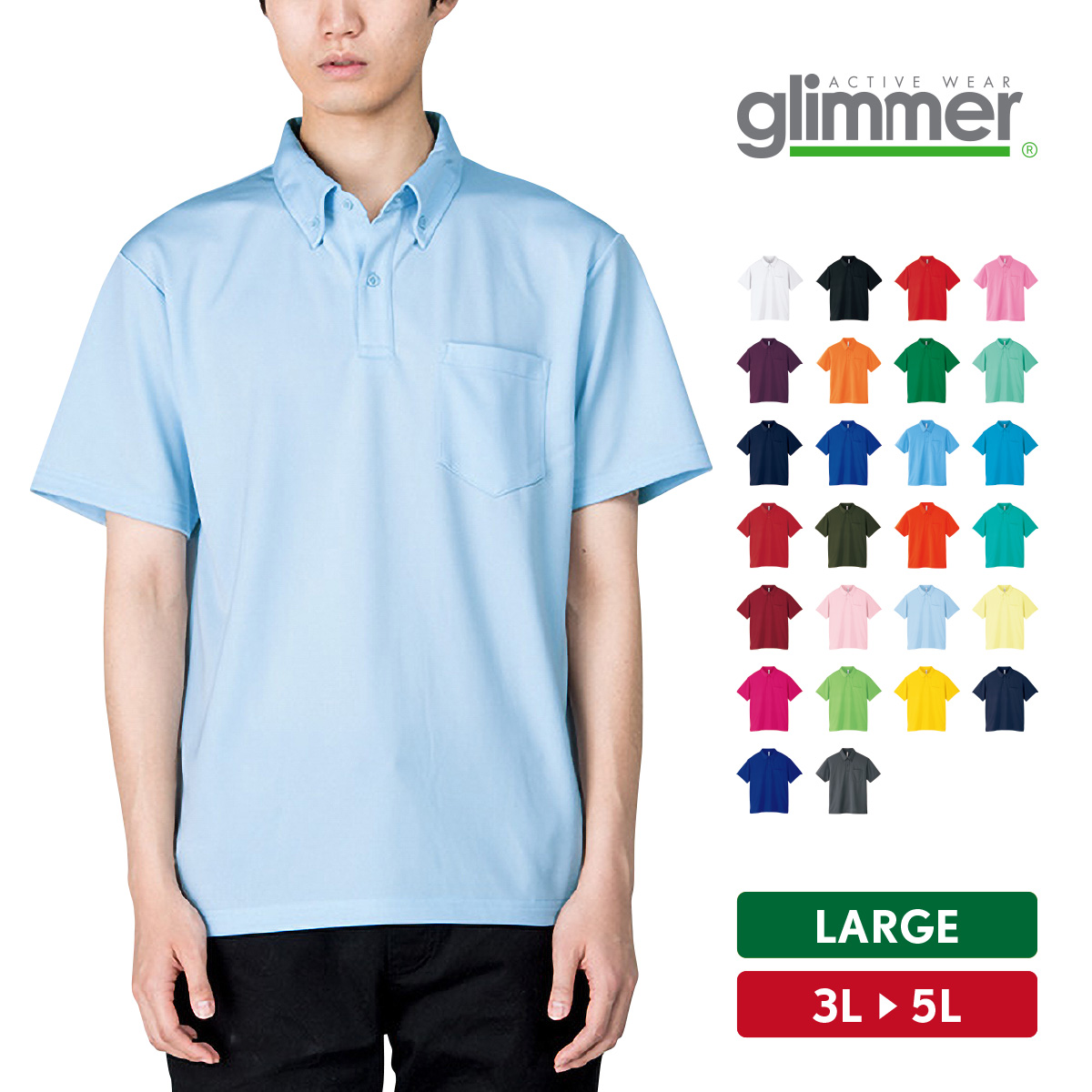 ポロシャツ メンズ 大きいサイズ 半袖 無地 ボタンダウン ドライ 吸汗速乾 レディース glimmer グリマー 4.4オンス 00331-ABP