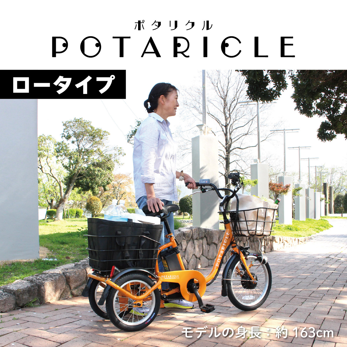 前後に大きなカゴを標準装備した三輪電動自転車。