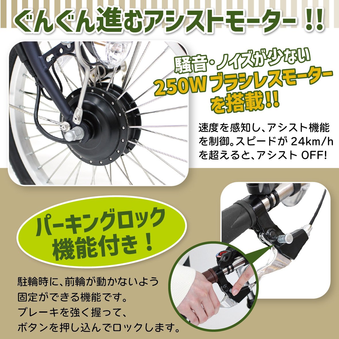 ペダルを踏む力を自然に補助する電動アシスト機能を搭載。
