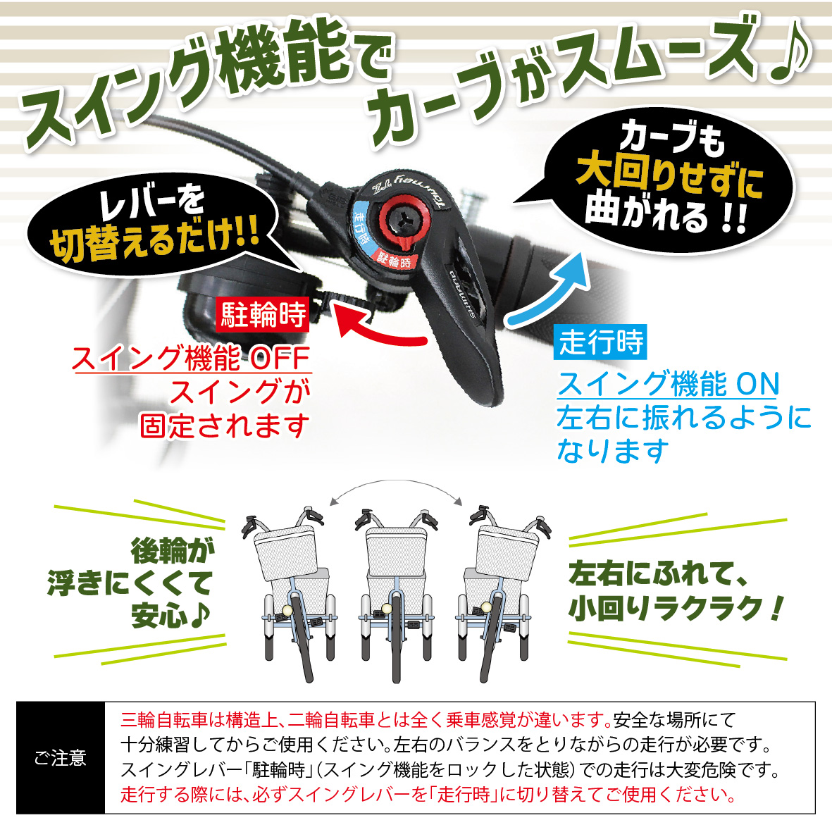 安定感ある3輪設計で、ふらつきを抑え安心して乗れる仕様です。