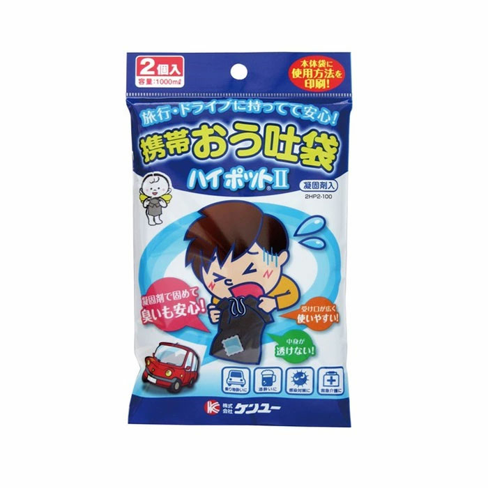 携帯おう吐袋 ハイポット 2 2HP2-100 (2個入り) [ ケンユー ] エチケット袋 車酔い 船酔い 乗り物酔い 嘔吐