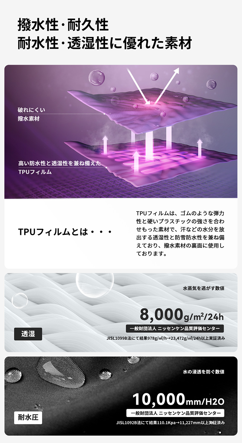 水の浸透に強い撥水性・耐水性に優れた素材