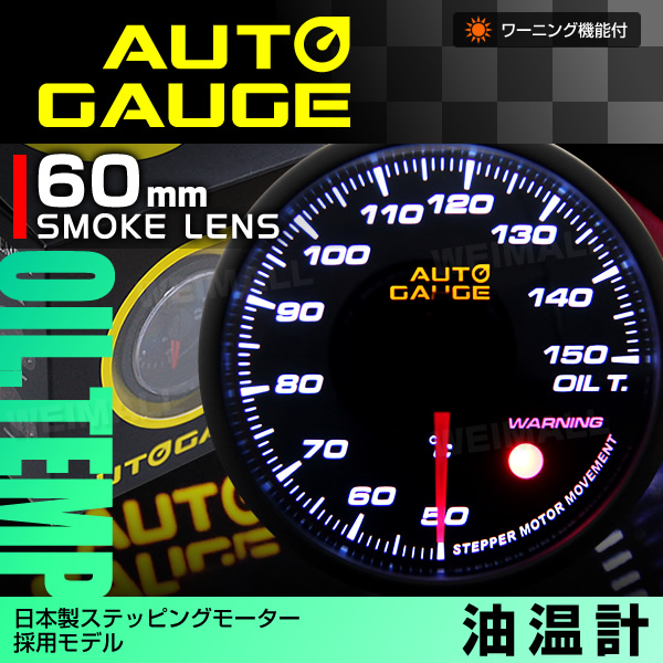 油温計 日本製モーター 新オートゲージ 60mm 追加メーター ワーニング機能 静音 ホワイトLED ノイズレス スモーク 360シリーズ